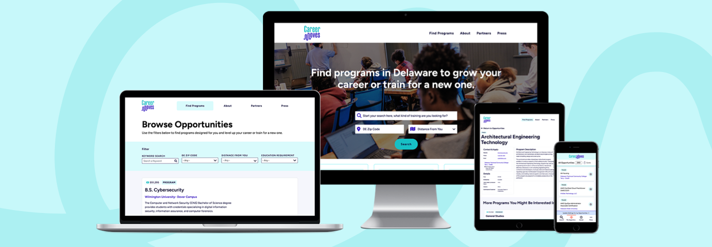 They came to us in need of a partner who could bring a solution to life: A career-advancement mobile app and companion website experience to make it easier for people in Delaware to find job skills trainings and workforce development programs.